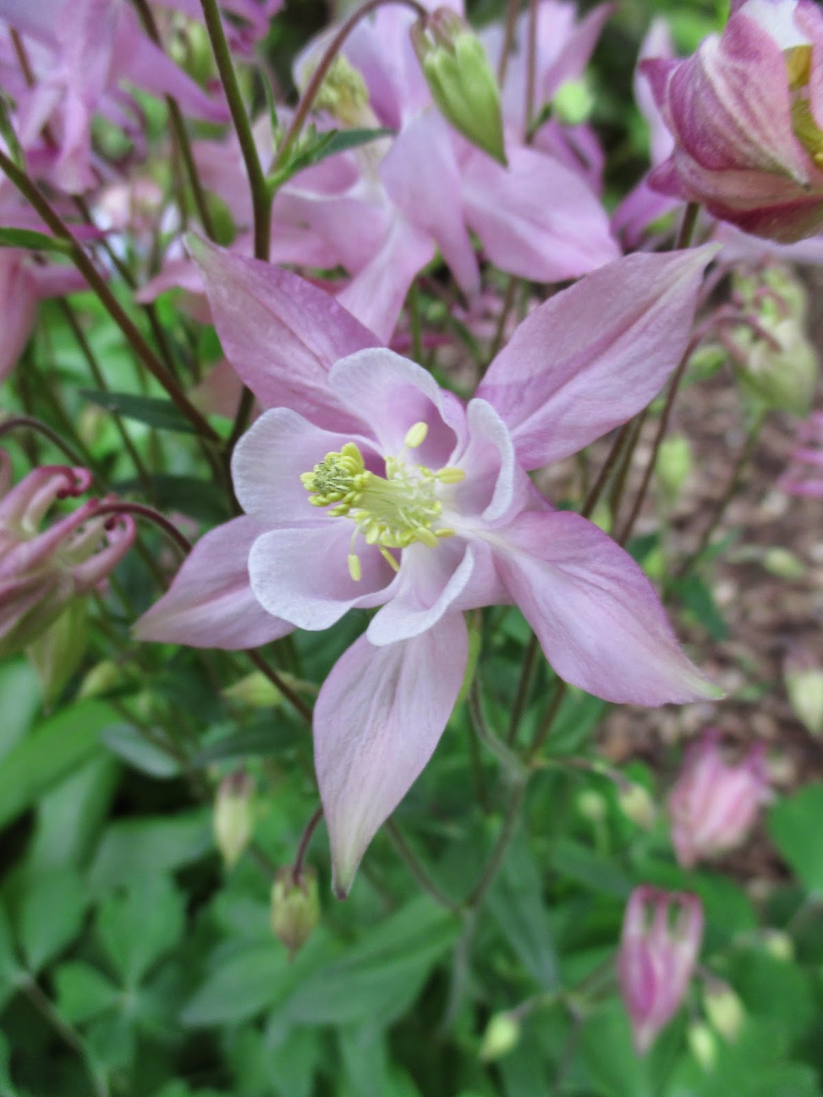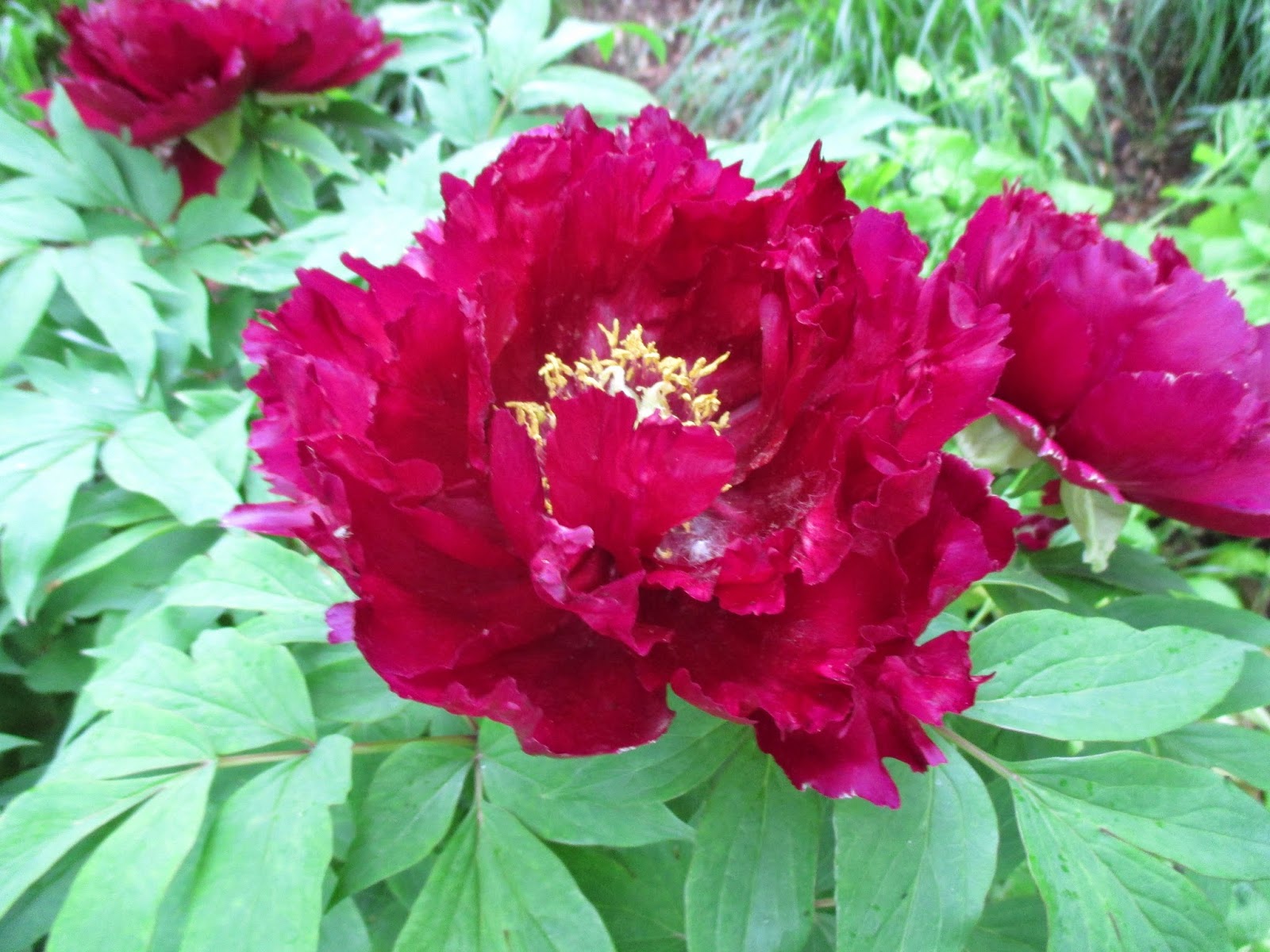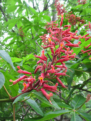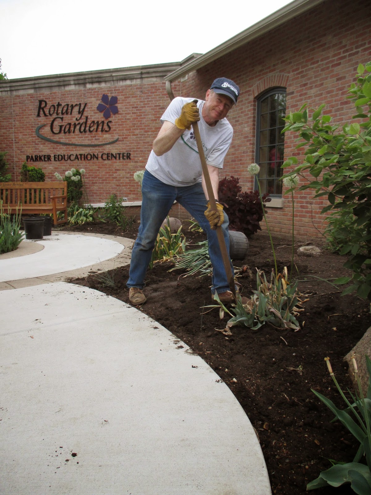 We had a nice turnout of volunteers today and staff was involved with projects both inside and outside. Our Assigned Garden volunteers continue to return for weeding and planting and we have a couple new ones as well. This Saturday (May 30th) will be the last day of our Bagged Compost Sale (8 am - 12 noon at the Horticulture Center) so come get some great amendments for the garden or container. This Saturday is also the third in a sequence of five straight Saturday Volunteer Work Days (8 am until 12 noon, meet at the Parker Education Center). We'll be planting many more plants during this fun work morning. This Thursday, May 28th, I'll be giving a lecture at the gardens on "Ornamental Edibles" (6:30 pm - 8 pm) if you're interested. Check out the remainder of our lecture series on our website (www.rotarybotanicalgardens.org) which includes information on many other opportunities. All the photos in the blog today capture color seen this morning before the rains arrived.