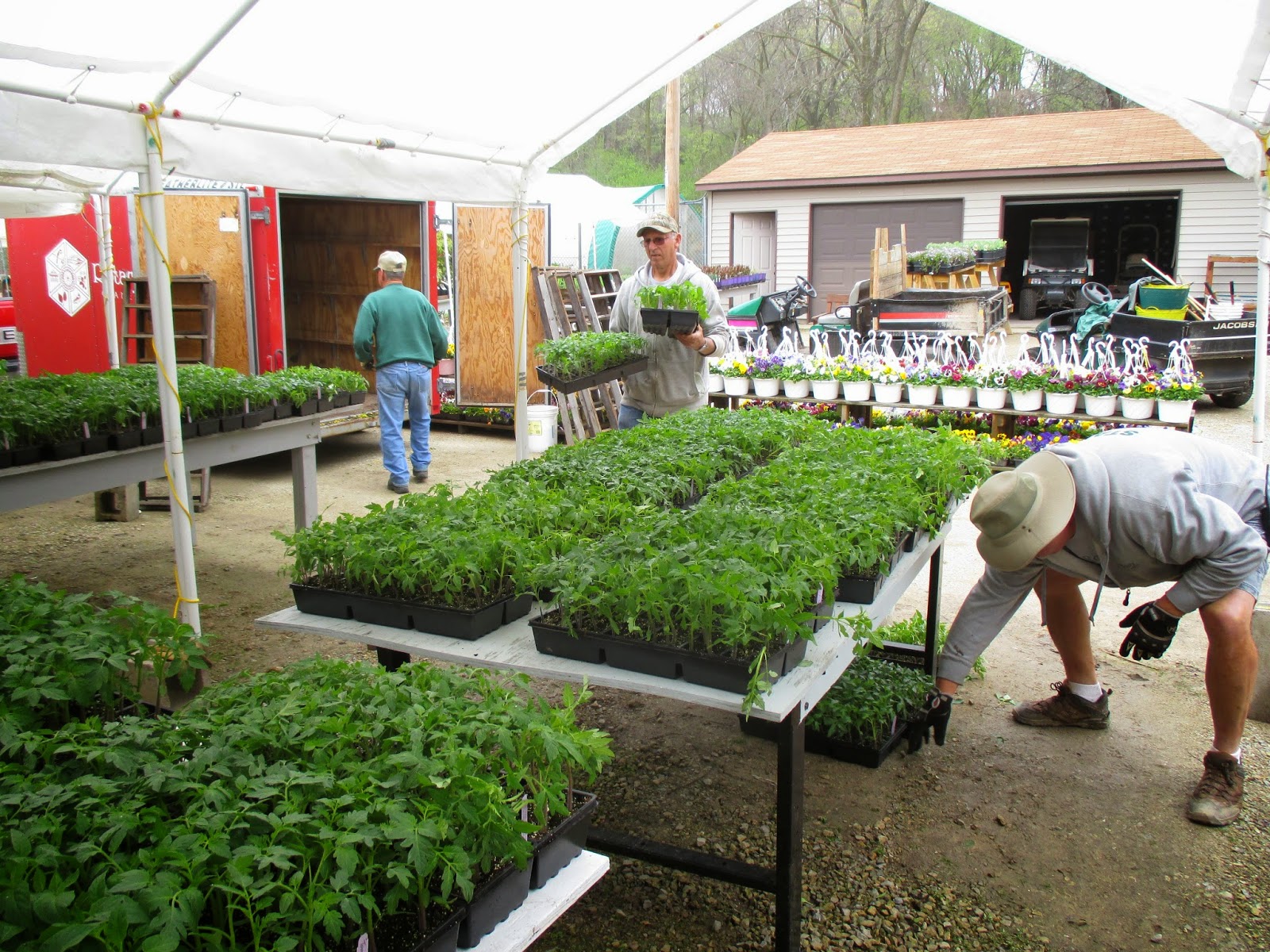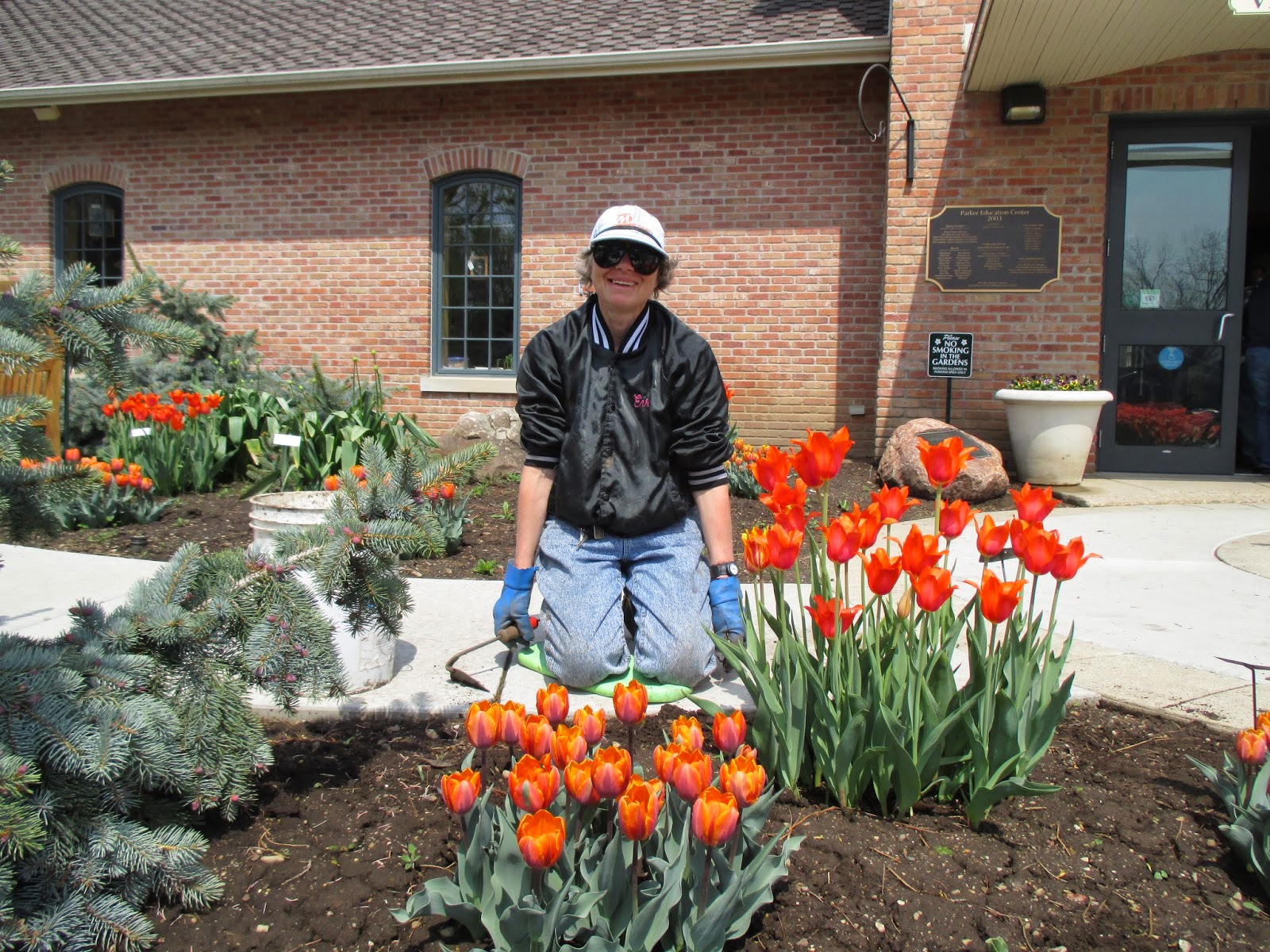 We had a very productive day out in the yard of the Horticulture Center preparing for the Spring Plant Sale. See our website for more details and some plant lists for the vegetable and herb offerings. The day fluctuated between drizzle, rain and finally some sun with temperatures reaching around 80 degrees F. It became quite humid for sure. That didn't stop our volunteers like Audra (left) and Janet seen directly above. These ladies are veterans of plant sale tagging and along with Joy, Jim, Carol, Pat R., Don, Pearl, Tina B., Nancy and some others, the pricing and labeling went very well. Some of the action is represented in these photos. Our last delivery (picked up by Terry and John) came in with the tomatoes so we're just getting final preparations accomplished before the RBG Members Only Pre-Sale this Friday (9 am - 4 pm). Folks can become members that day at the sale and start shopping immediately (with the 10% discount applying throughout the sale). Cindy, Cheryl, Terry, John and Janice had a wide range of activities, most revolving around the plant sale. I also bounced between plant sale duties and we had some other activities out in the gardens. Other volunteers included Eva weeding in multiple locations and Bill O. mowing. Nancy, Alan and Dr. Gredler all did a great job painting and were very helpful. We also saw Maury, Dr. Gredler, Dick H., Dick D., Jerry, Ron R., Polly, Kris K. and many others. It was a busy day. I was able to take some quick photos primarily in the woodland walk garden which is looking spectacular!