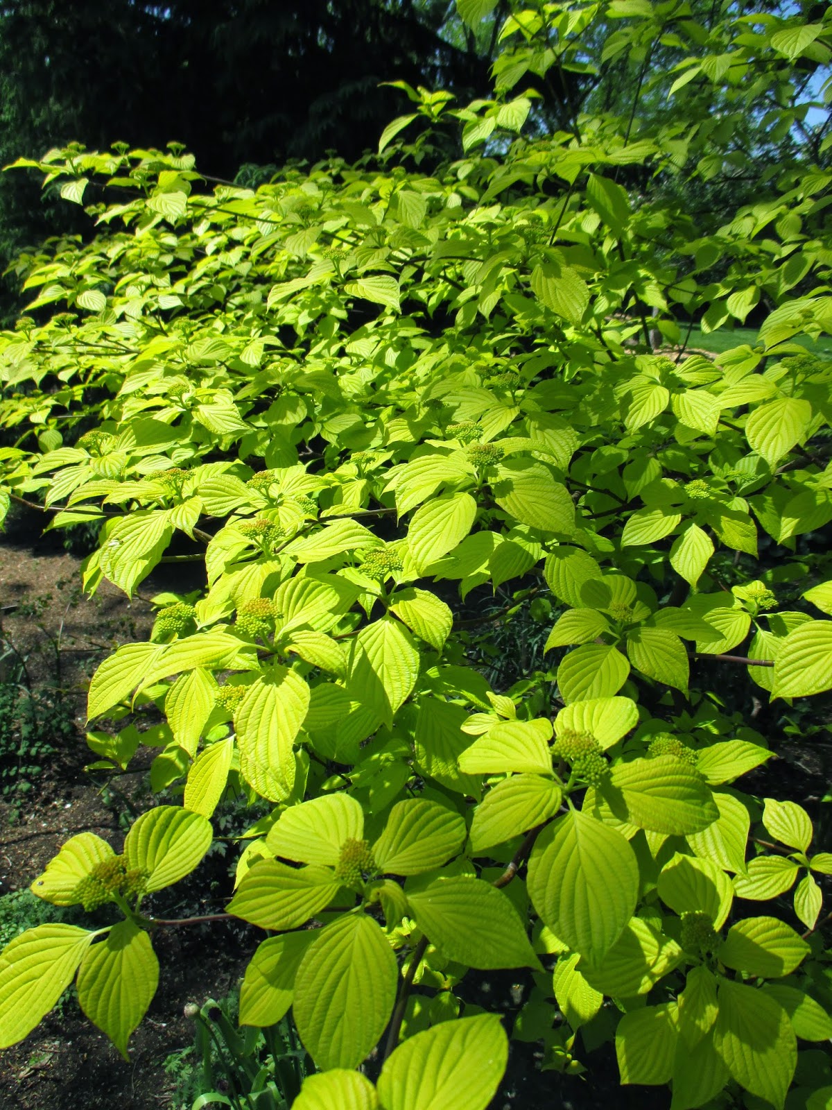 It was a beautiful day out in the gardens. It was a cold start this morning with temperatures in the upper 30 degrees F. Some of our volunteers reported seeing patchy frost this morning but I think we're in the clear for now and are leaving some tender items out tonight. We didn't see any damage on our plants. The third day clearance at the Spring Plant Sale saw some traffic today and it's nice to clear out a couple more plants. Our remaining vegetables are donated to area community gardens and youth programs. Joy, Joan, Corky, Mary W. and Tina all helped with the sale today with some set-up help from Janice. I had to check on some projects out in the gardens and took all of these photos today. There is so much color but our weeds are starting to gain momentum and will have to be addressed in a timely manner. Further below is more color from today.