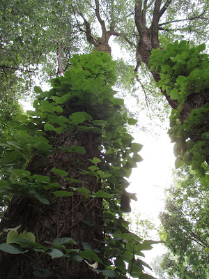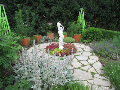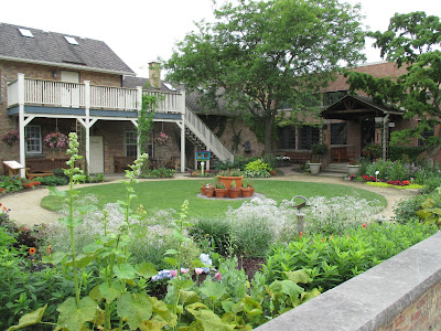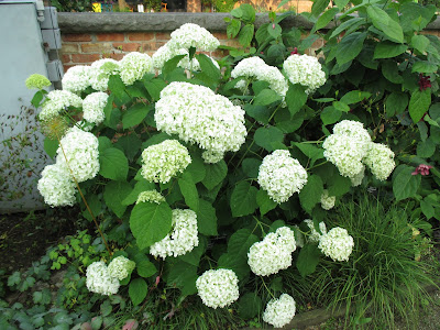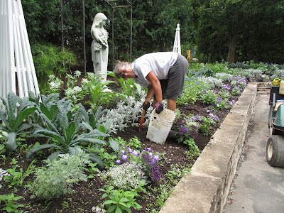 The rain held off for today although we had another 4/10th of an inch overnight. There was very little need for watering today as we've really had quite a wet June overall. I'd certainly prefer that to a dry June! The day was cooler and in the mid 70 degrees F with overcast skies most of the day. It was great working weather although the droves of mosquitoes are starting to make their blood-thirsty cravings known to most of us. Above is the Incrediball hydrangea (Hydrangea arborescens 'Abetwo') looking good near the English cottage garden. We had another solid turnout of volunteers and most of the grounds crew was on site for some work as well. Below are some photos from this morning.