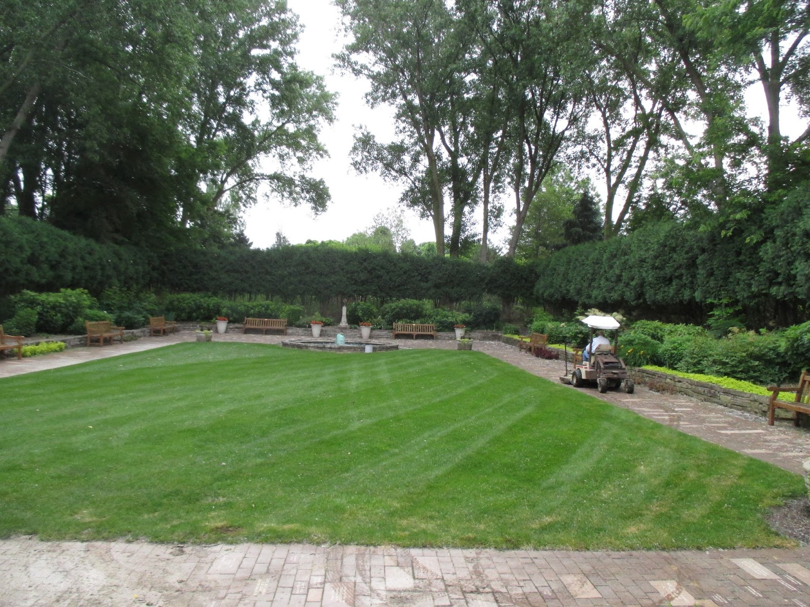 Dr. Gredler mowing in the sunken garden above