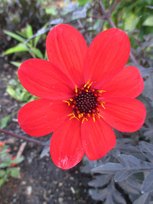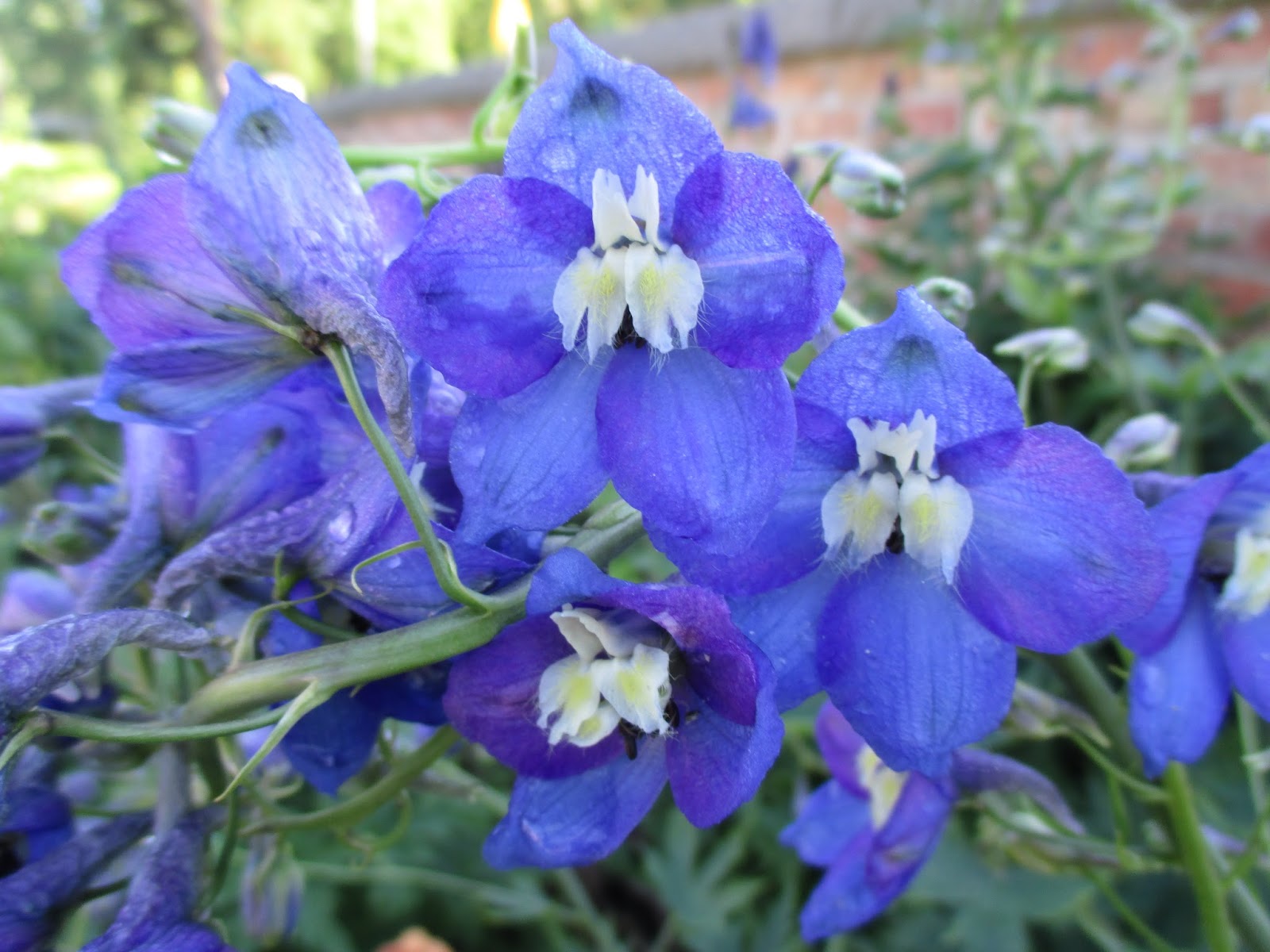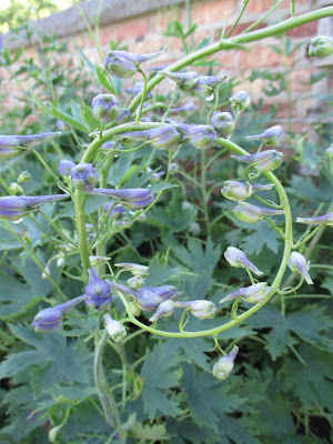 this delphinium (Delphinium sp.) was bent over in the rain and hasn't straightened up yet!