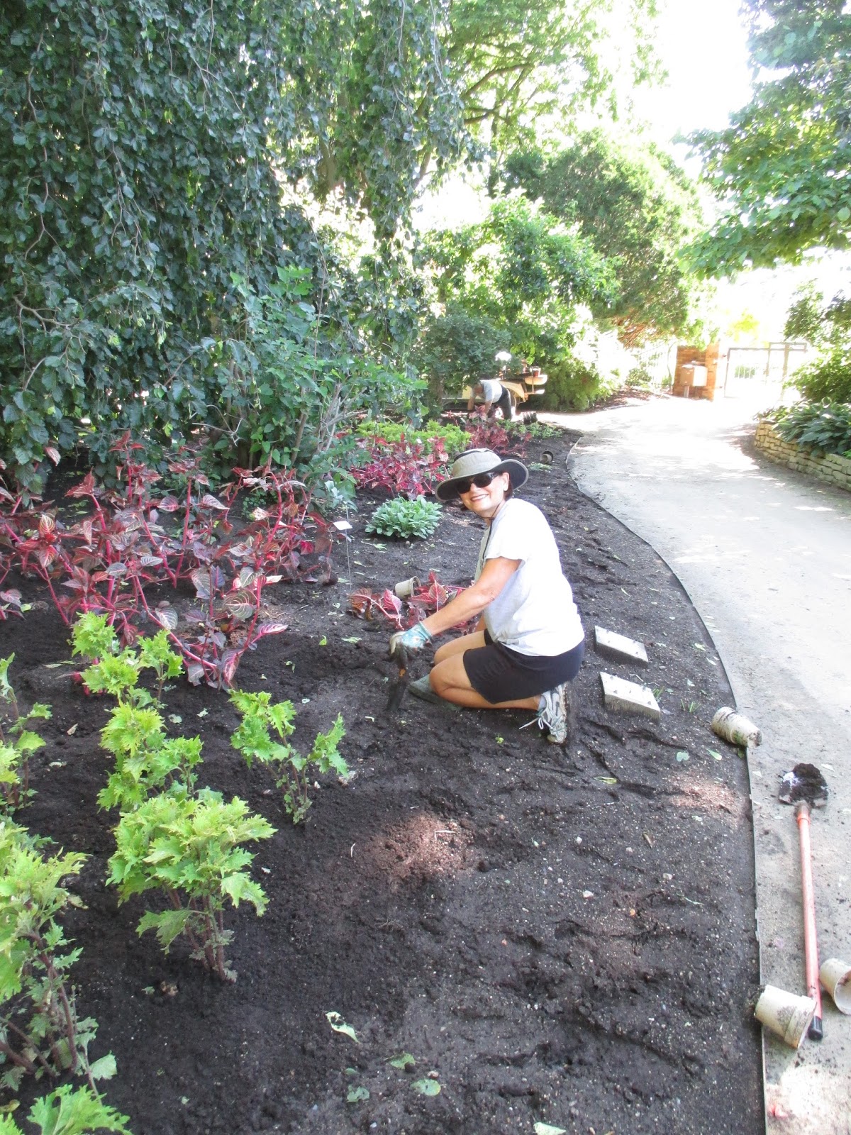 Today was a beautiful day with ample sunshine. We think we had over six inches of rain over the past four days so we were happy to get out in the garden although it was quite soggy still in many locations! The photo above shows our placid pond with arched bridge and fountain in the distance. With a chance of rain over the next couple of days, we took full advantage of the weather for more tidying and planting. We also did quite a bit of mowing and were happy to see lots of visitors out in the gardens. We had an excellent volunteer turnout and the ground staff accomplished a diverse and significant amount of projects! Below are more photos from the gardens today.