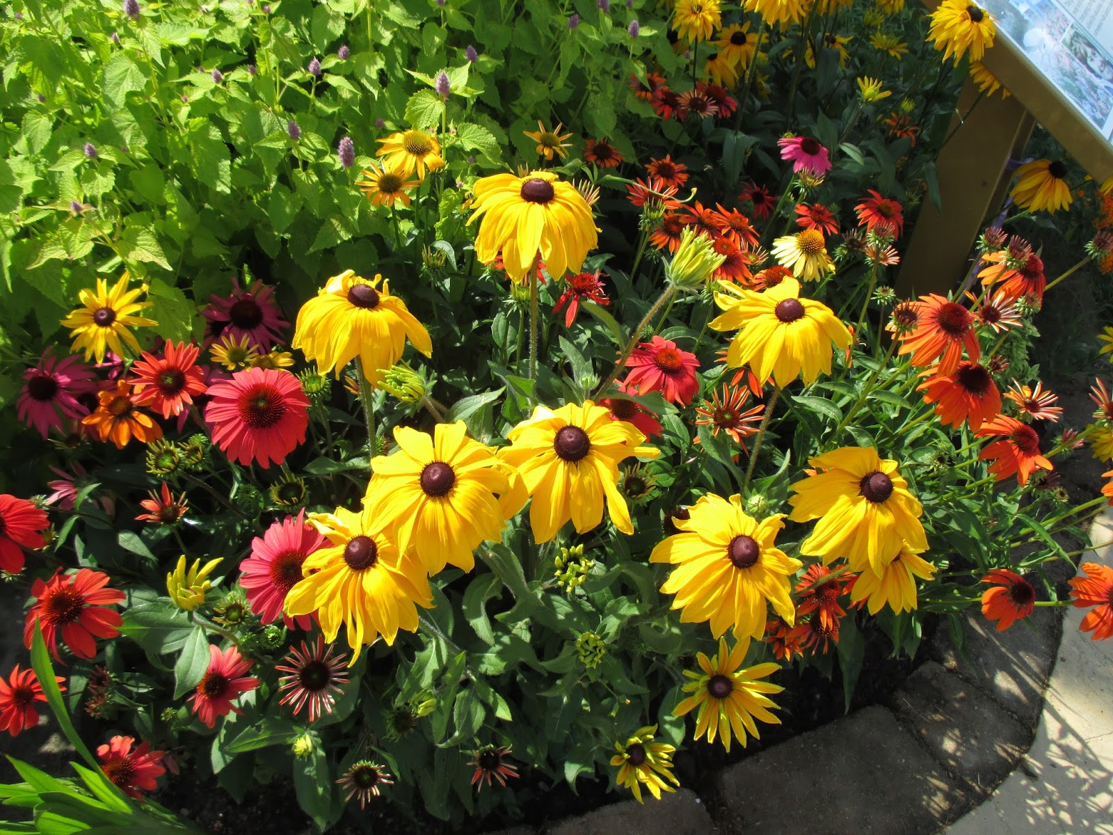 Today was a warm and sunny, summer day with lots of visitors out in the gardens. It was nice to see so many people enjoying the garden throughout the day. Above is a nice shot of coneflowers (Echinacea hybrida 'Cheyenne Spirit') and gloriosa daisies (Rudbeckia hirta 'Indian Summer') in the Nancy Yahr Memorial Children's Garden. There was no shortage of color anywhere out in the gardens but we did have a shortage of staff with some of our grounds staff at home preparing for the Home Garden Tour tomorrow (July 11th, 9 am - 3 pm, rain or shine). Cheryl, Big John, Cindy and Janice are all on the HGT tomorrow along with four other wonderful gardens. Tickets can be purchased yet today for $10 each or tomorrow for $12 each at RBG, K&W Greenery or at any of the individual homes. We did have a nice volunteer turnout today though and are ready for what should be a busy weekend!