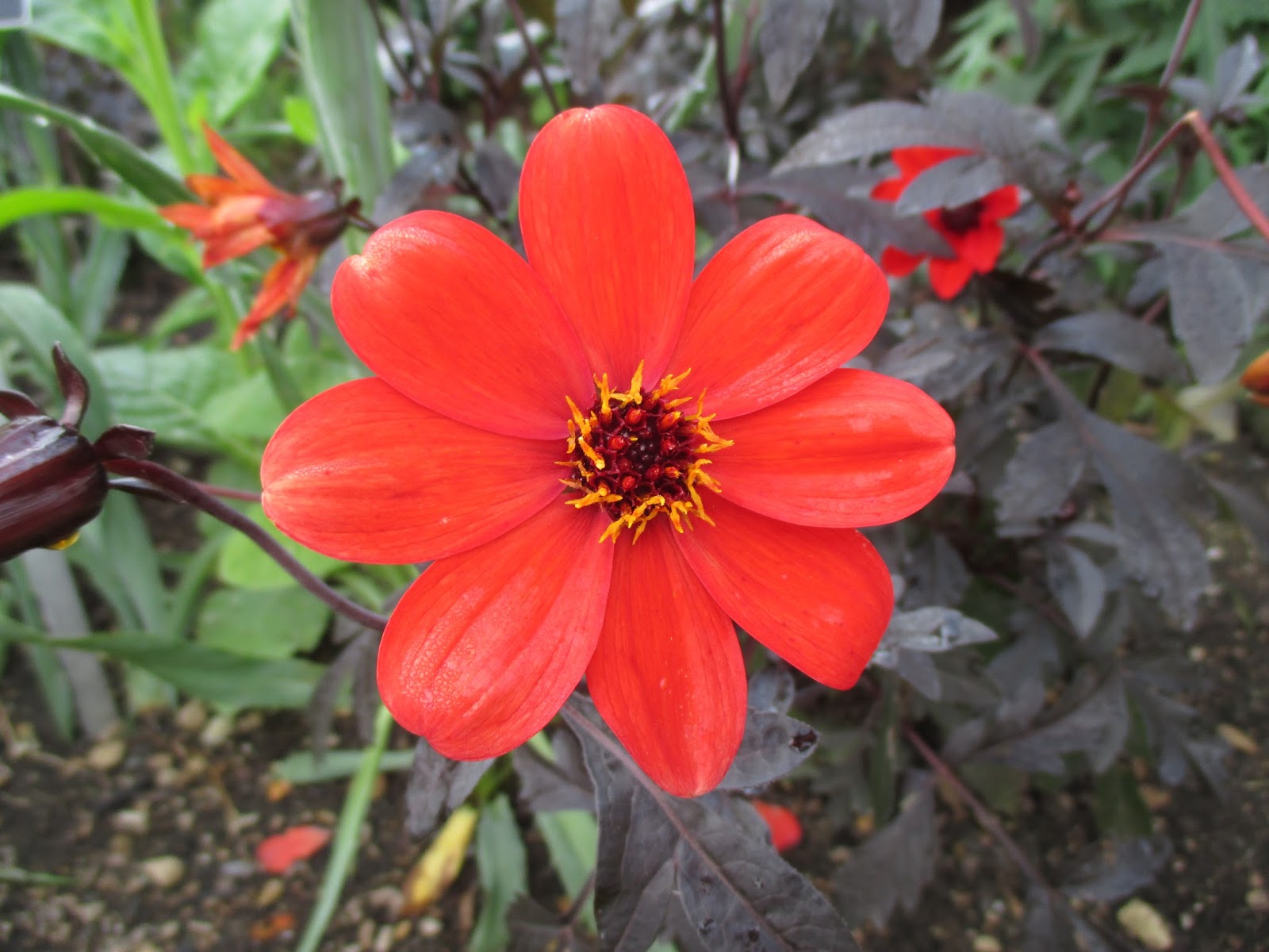 Today was another cool one at around 72 degrees F. The sunshine was welcome and it looks like we'll head in to some hotter weather later in the week. We hope to have great weather for the Home Garden Tour this Saturday, July 11th. See our website at www.rotarybotanicalgardens.org for more information on this event. It was a great day to visit the gardens and we saw MANY folks strolling through including some tours and groups of children. While the cooler summer has had ample rainfall, we still are waiting for the heat to help push along our tropicals. However, there was no shortage of beautiful things to see at the gardens today like the 'Mystic Enchantment' dark-leaved dahlia (Dahlia sp.) seen directly above. Our grounds staff kept busy today and we had a superb group of volunteers help out in the gardens. All the photos in this blog were taken today.