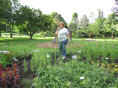 The grounds staff kept busy today. Cheryl (half day) continued on her weeding projects while Cindy (half day) composted lots of plants and moved on to tidy work in the Nancy Yahr Memorial Children's Garden (Scented Garden). Nolan worked on skimming and replacing path gravel, mulching, removing plants and some other tasks. Big John made a plant run, butchered a willow (it needed it!), watered the yard and had some other duties. Terry sheared, watered, mulched and had some other duties as well. I was able to place plants and help organize the volunteers today. It was a very productive day!