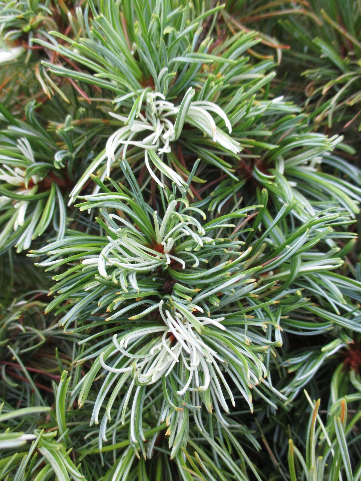 this dwarf Japanese snow pine (Pinus parviflora 'Tani Mano Uki') looks great with this "frosting"