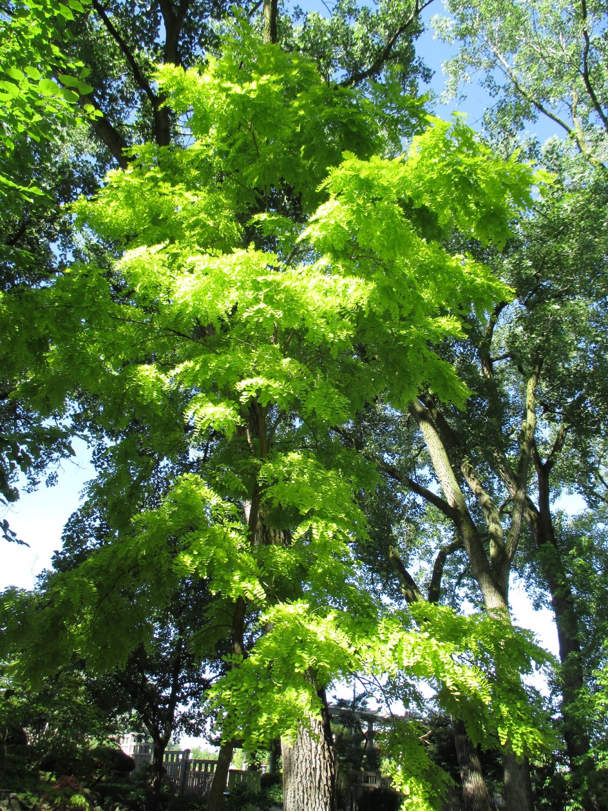 the golden foliage of 'Frisia' black locust (Robinia pseudoacacia) illuminates this space - woody tree