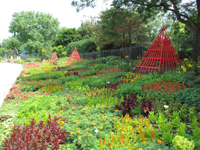 With the impending Holiday weekend, we had a busy day tidying up the gardens and getting ready for the inevitable influx of visitors. Today was extremely busy! Nice shot above of the Russo Family Fountain with the observation pier in the distance. I took this photo from the North path which connects the Japanese garden (via the arched bridge) to the gazebo garden. This sunny day was a bit warmer than the previous couple and despite some areas starting to dry out a bit, we're happy for the heat which should prompt more growth and color from our vast annual beds. We had another excellent crop of volunteers arrive to help out today although I was remiss in photographing them as I was caught up in some lengthy projects. Regardless, the gardens continue to look great and will be headed for peak summer color over the coming weeks! All photos in this blog were taken throughout the day today.