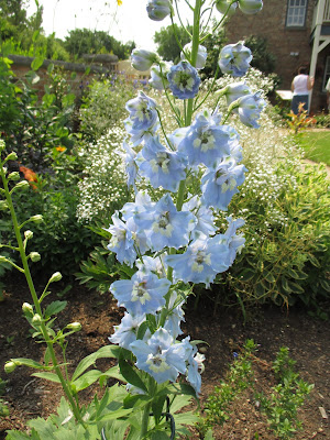 delphinium (Delphinium sp.) with baby's breath (Gypsophila) in the background - perennials