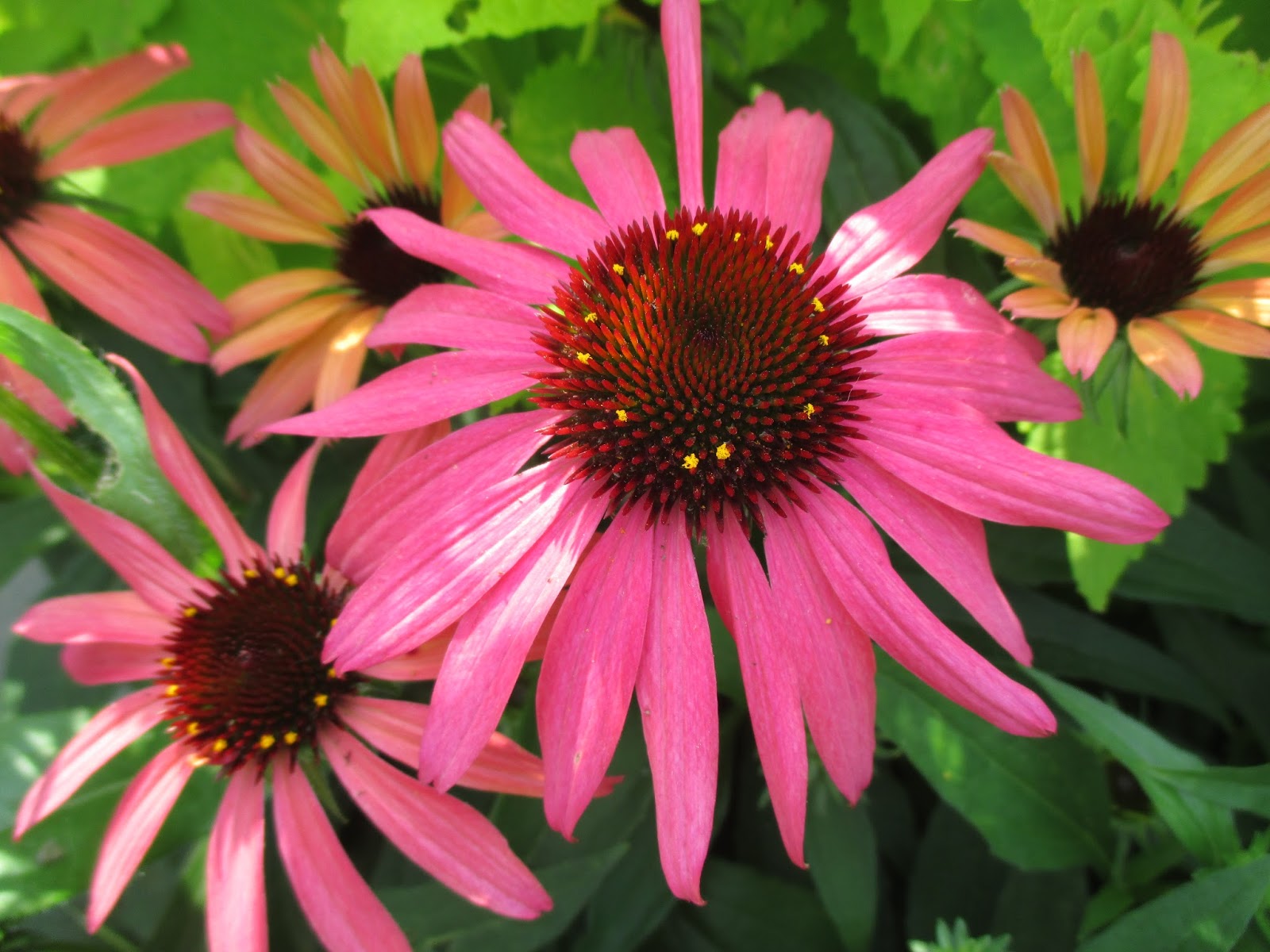 Above are some of the color range of the fabulous 'Cheyenne Spirit' coneflower (Echinacea hybrida) which run the gamut of pinks, reds, oranges and yellows. The grounds staff prepared well for the weekend. Trevor worked on path repair and did all of the push mowing around the gardens. Terry worked on watering, shearing, fertilizing and other tasks. Cindy also fertilized multiple areas, weeded the terrace garden, checked over the Smelly Garden and watered the yard. Big John ran irrigation, planted and continued his excellent work on path edging. Janice watered, weeded and did the cutting display. I was able to spray more herbicide, fertilize 50% of our lawns and continue to chip away at my desk work. It was a great day and we should have a super weekend.