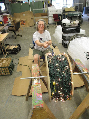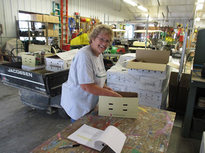 With the long Labor Day weekend and a rainy start to the day, we didn't see a lot of volunteers but had some great help from those that meandered in to the Horticulture Center. Patrea (above) worked all morning on processing dangling icicle lights for the Holiday Light Show (HLS). Pat M. was in to set some of this set up for Patrea and he had quite a few HLS-related tasks as well. Pat helped both in the morning and afternoon. Kathy (below) helped inventory and price bulbs for the plant sale (along with Cindy and Cheryl). Alan and Lloyd came in to help out with some gardening projects and also helped with much of the delivery unloading. Bill O. and Dr. Gredler braved the rain and did all of their mowing duties out in the gardens. Maury and Dick H. went on a road trip to pick up some plants and other supplies for the plant sale. Maury also ran quite a few errands too. Vern was working on some carpentry projects We also saw Dr. Yahr, Bev D., Jim D. and many others. Our Garden Development & Maintenance Committee (Big John, Larry H., Christy, Christine, Iza and Gary) all met this morning as well. Larry O. popped by as well and it was good to see him too!