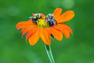 We had some decent rain overnight and more today in two good patches. It was a "timely soaking" as the gardens suffered through a hot and dry weekend for the most part and the rainfall helped alleviate some impending watering needs. I was over at the Horticulture Center all day getting ready for the Fall Plant Sale which starts this Friday as a RBG Members Only Pre-Sale (10% off which extends throughout the sale). The sale runs through the weekend (9 am - 4 pm daily) for the general public at the Horticulture Center. Check out www.rotarybotanicalgardens.org for more information on this event and consider becoming a member on Friday and shop immediately! The curve ball for me is that I didn't get many images today as we were unloading deliveries along with other pre-plant sale tasks. The first six photos in this blog were shared this weekend by Ken Tapp who captured some great pollinator activity out in the gardens; much of which was on the annual Mexican sunflower (Tithonia rotundifolia 'Torch') seen in photos 1, 2, 3 and 6! Note the tagged monarch n the fourth photo down. Thanks for sharing Ken!