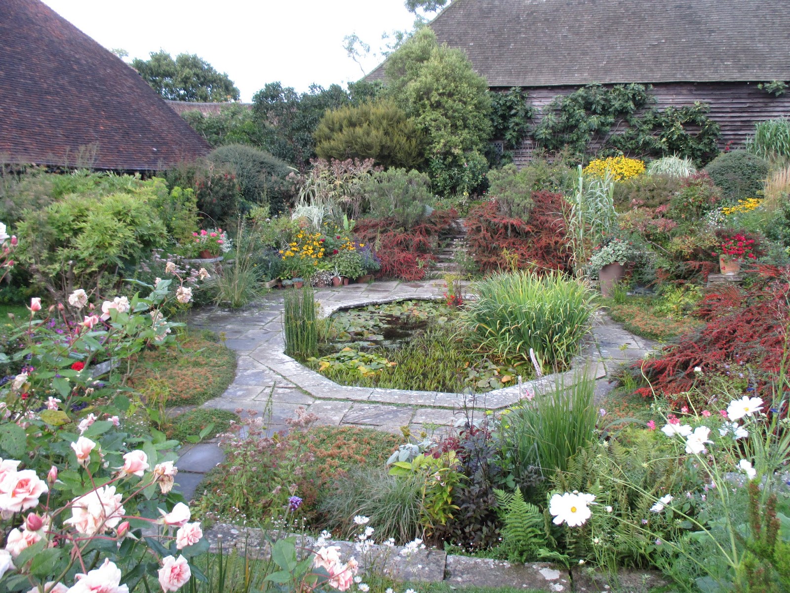 Well. I'm finally at Great Dixter and was fortunate to be able to take some photos out in the gardens right away after dropping off my luggage. It has been an epic journey thus far to be sure. My plane that was supposed to depart O'Hare Monday night at 6 pm was deemed unsafe to fly by 9 pm after being looked at extensively (that's comforting!). They brought out another plane from the hangar and that one was ready to go by 11:45 pm that same night! I was able to coordinate my pick-up by Catherine from Great Dixter although there was very little margin for error with arrival, customs, luggage and catching a bus. It all worked out well. As I type, I'm getting settled in the house seen in these photos along with four other students and I've met quite a few people already. I'm not sure what all the gardens here are named but looking forward to the experience. Enjoy the beauty with more to follow! I start my new job tomorrow at 8 am sharp!