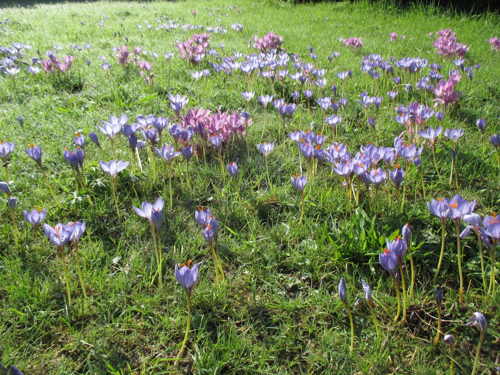 Autumn crocus above and below with Colchicum in the Meadow Garden