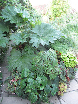 the giant Gunnera is always impactful - here in a container arrangement in the Blue Garden