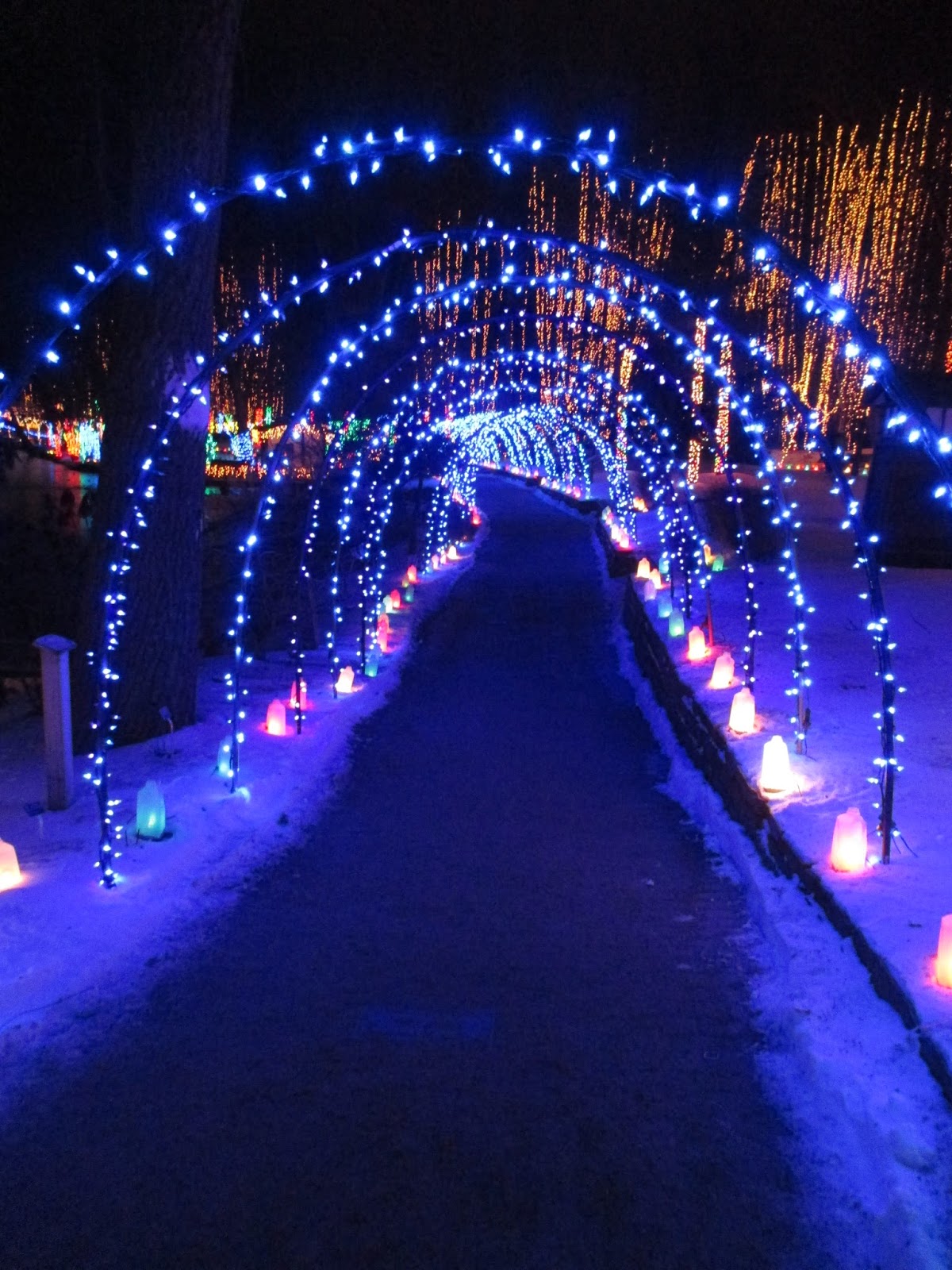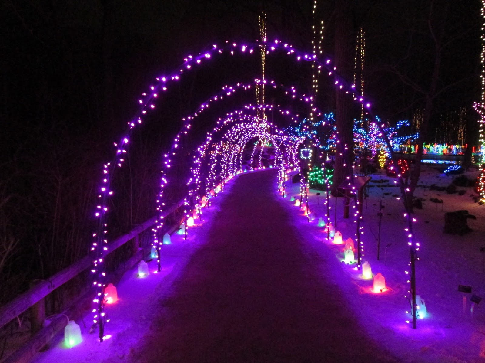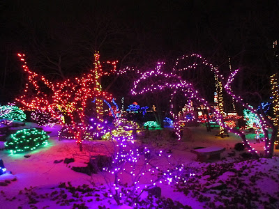 Last night concluded our Holiday Light Show (HLS) for the season. I took these photos last night and the snow was a welcome addition to the show for the last two nights which were both well attended. The photo directly above was shared by Laura Boettcher this morning (from last night). We don't have an official tally on attendance yet but certainly beat the record last year and were pleased with the steady attendance for this annual fundraising event. As I type on this Monday morning, we have volunteers out in the gardens starting to take down lights. Alan, Ron R., Terry, Peg and Larry H. were all out collecting lights today. Depending on the weather, it will take 2-3 months to take down the HLS and properly sort, process and store all of our lights and supplies. Our volunteers were again instrumental in helping with this event including set-up, facilitation and ultimately the take down of the HLS as well. Ron P. was in to repair lights and our carpenters (Dave, Jim, Vern and Ron Y.) had plenty of work as well. Dick H. and Bill O. repaired one of our trucks and Bill collected garbage from the HLS route. Dr. Gredler was in for some painting and Maury ran multiple errands for us. We also saw Gary, Urban, Chuck S. and many others today.