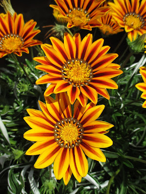 My time is quickly being redirected to preparations for this year. With only a couple months of preparation time, I'll be neck deep in catalogs this week as I start to get our orders together. I'm also sorting some of my summer images which contain new plants that I'll be hunting for yet this winter. I've included some neat treasure flowers (Gazania sp.) which are a gorgeous, heat-tolerant annual for us. Native to South African alpine meadows, this plant is tolerant of dry soils and will typically get 8"-12" in height. The silvery-green foliage is also interesting although rabbits find this entire plant delicious so consider yourself warned! Although there are many species, the most common selection for our gardens is Gazania rigens. The flowers are quite vivid and long-lasting for treasure flowers. Directly above and below is the new variety 'Kiss Frosty Orange Flame'. Enjoy the wide variety of available selections seen below...