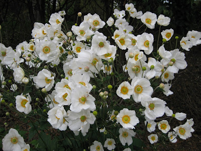 The Perennial Plant Association (www.perennialplant.org) has selected 'Honorine Jobert' Japanese anemone (Anemone x hybrida) as the Perennial Plant of the Year for 2016. We've grown and enjoyed this perennial for many years at the gardens and all of these photos are from RBG. We're also honored that the Perennial Plant Association (PPA) has requested the use of six of these photos in their brochure to promote this plant nationwide. Our best specimens are in the Northwest corner of the sunken garden where they get part sun and ample moisture. Hardy to zone 4, 'Honorine Jobert' grows best in rich, well-drained soils. They will despise poor drainage or dry soils. The dark, glossy green foliage is nice but the flower show (as seen above in particular) is amazing from late summer well in to fall. The clear white blooms are about 3" in diameter and a profusion of silvery buds is constantly opening up and providing color for well over two months. Look at the colorful centers in the close up photos below as well. Mature size for an established plant is between 3' and 4' and deer tend to leave this plant alone as well. Slowly spreading, this perennial will form a nice patch as long as it is happy. I think this is an excellent selection and certainly worthy of the 2016 PPA award!