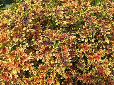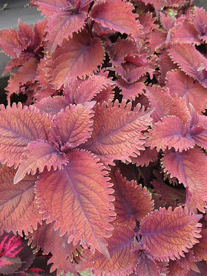 While I've always been a big fan of coleus, I continue to be amazed by the broad spectrum of varieties that are currently available and being introduced each year. We probably plant 2,000 coleus each year representing 30-40 varieties. The Latin name for coleus has fluctuated between Coleus blumei, Solenostemon scutellarioides and Plectranthus scutellariodes. I'm indifferent to this and will let the botanists sort this out! What's nice is the sun tolerance, color range and bulkier size that coleus now provides in the garden. Over the past three years, I've become quite smitten with the Under the Sea Series of coleus out of Hort Couture (www.hortcoutureplants.com) which are simply gorgeous. The variety 'Copper Coral' above is brand new as is 'Fish Net' seen in the two photos below. There are eleven varieties in this series and they all are not only colorful but have interesting leaf shapes that have what I call "aquatic detail". I hear rumor of the 12th introduction in this series being named 'Sea Urchin Neon' and the photo I saw made my mouth water. They all look like they should be on the bottom of the sea floor! We've grown nine of these selections and they have all done well in both full sun and part shade. Mature size might vary between 12" and 24" or so but the impact is significant in combinations, containers or mass planting. I don't get any "kick back" for promoting these just so you know! The Under the Sea Series is simply "over the top"!